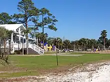 - π (first left after crossing the Navarre Beach Causeway from the mainland). The quieter area of the beach; preferred beach by the locals. Two beach access points (with a third being built for summer 2019) with bathrooms, picnic pavilions, wash-off showers, and a lifeguard post that is manned during the peak season. Should you wish to use the beach pavillons, they can be reserved at the County administration's website.