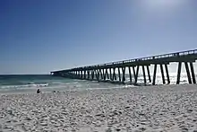 Navarre is famous for its sugar white sand beach and emerald green water. There are over a dozen public beaches with parking boardwalks across the dunes. There are also three beach access areas, with bathrooms, parking, and pavilions for picnics and events, in the Navarre Beach Marine Park (see above section), which is located immediately to your left after crossing the Navarre Beach Causeway.