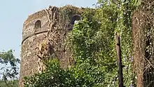 - 🌍 Dronagiri Fort. The ruins of the fortification are seen on the fort. There is a church Nossa Senhora da Penha in good condition, but without any idol or inscription. The church is in the inner fortification. The main gate to the fort is situated on the south of the church 50 m away. The arch of the gate is broken, yet the guards rooms are in good condition. The Ganapati carved on the key stone is placed in one of the guard room. From the main gate a path way leads south to the Village Karanja. In between a Vetal mandir in ruined state is located. The pathway starting from the back of the Vetal mandie leads to large water tank in good condition situated among the forest. The fort is accessible in all seasons. The trek to the fort is simple and safe. Being close to Uran and Karanja, the fort was strategic importance since old times. The entire hill is densely covered with forest.
