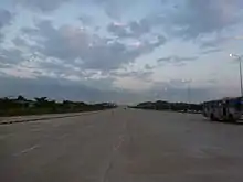 The tolled YangonβMandalay Expressway connects Yangon to NPT. It's 320 km (200 mi) long with a service complex containing a fuel station and a large, expensive (by local standards) restaurant just past the halfway point if you're coming from Yangon.