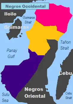 | Central Negros Occidental (Bacolod, Talisay, Murcia, Salvador Benedicto, San Carlos, Pulupandan, Valladoid, San Enrique, Pontevedra, La Castellana, Hinigaran, Isabel) The Central region is where the capital is located; Bacolod. |