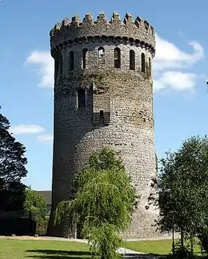 - 🌍 Nenagh Castle, O'Rahilly Street, ☏ +353 67 33 850, castlenenagh@gmail.com. Apr-Oct Tu-Sa 10:00-13:00, 14:00-16:30, Nov-Mar Tu-Sa 14:00-15:00. An early 13th century castle, with a massive 30 m chess piece of a circular Donjon or Keep. It was battled over several times but never smashed, so the lower two-thirds are a fine Norman survival. The top third is a tale of "bishop takes castle, check!" - in 1861 Bishop Flannery added the top level of clerestory windows and crenellations. He intended it to become the bell tower of a grand RC Puginesque cathedral, but the economic slump of the US Civil War put a check on that, and then Ennis Cathedral was developed instead. You can climb the castle's interior 101 spiral stairs to the top, but they're steep and narrow. Free.