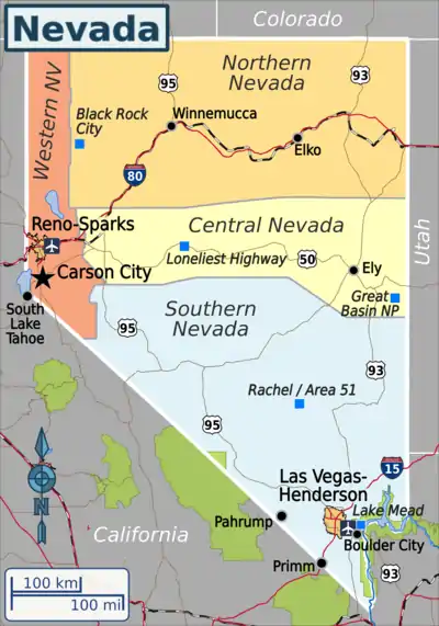 | Northern Nevada (Elko County, Humbolt County, Pershing County, northern Eureka County, northern Lander County) Mostly sparsely-populated desert |