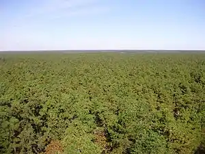 Although New Jersey is the most densely populated U.S. state, the Pine Barrens contain acres of flat, remote wilderness composed almost entirely of the Pitch Pine. The Pitch Pine can survive in nutrient-poor conditions and is resistant to the region's frequent forest fires, which makes it the dominant tree type.