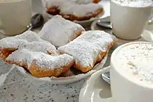 Beignets (pronounced "ben-yays") are a deep fried square pastry covered with powdered sugar. Most famously found at Café du Monde & Cafe Beignet, beignets are a traditional New Orleans treat enjoyed by tourists and locals alike. Beignets are traditionally served in orders of three with café au lait.