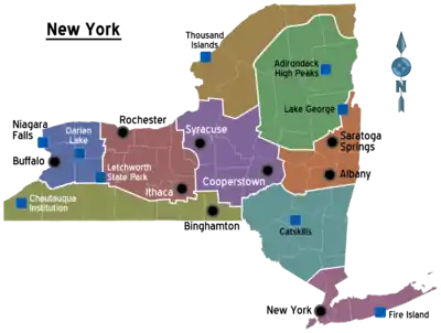 Some people say that New York has two regions: New York City and "Upstate" β i.e., everywhere north of there. In fact, New York is a large state with a number of distinct travel regions.