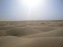 - π The Lut Desert, in Sistan and Baluchestan, Eastern Iran about 150 km east of Kerman, is an absolutely uninhabitable place and has one of the most hostile environments on Earth. Access is extremely difficult, since it is isolated and there are no roads connecting, except for a hidden road that only 4x4 vehicles can explore together with a tour guide. During the summer, ground temperatures can reach 71 Β°C (160 Β°F), thus making it the hottest place on Earth, especially in a region called Gandom Beryan (Toasted Wheat in Persian), a large plateau covered in dark lava. Visiting is life-threatening; during the winter it doesn't get much better. Even with strong sunscreen, severe sunburning may happen within 15 minutes of exposure, and in 1 hour time, death is possible, due to severe sunstroke in such temperatures. Getting lost here, even with all the equipment and hundreds of liters of water, will often be fatal and rescue will not be available.