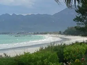 - 🌍 Doc Let Beach (around 50 km N of Nha Trang). Located in the Ninh Hòa district north of Nha Trang, Doc Let is a beautiful, long beach with shallow, crystal-clear waters. The water has weak waves, but it is still excellent for swimming. Local fisher families sell and prepare seafood they will cook for you on the beach for a very reasonable price. The southern part of the beach contains the Ninh Hòa fishing village, where the north of the beach contains some relatively inexpensive resorts or it still underdeveloped. The best parts of the beach are the ones in front of the resorts, with the rest unfortunately with a lot of rubbish thrown by locals. You can pay a fee to rent a chair and use the showers/restrooms of White Sand Doclet resort or Paradise resort. Doc Let beach can be reached from Nha Trang using bus #3, by motorbike, and by some day tous generally aimed at Russian visitors. If you are staying in a resort there, the resort may offer you transfer services for a surcharge.