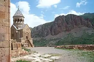 • Noravank Monastery - Surrounded by brick red cliffs, and the famous church on top of a church design, Noravank is one of Armenia's most popular attractions. Access to the second story church is by rock steps jutting out of the facade. There are many intricate carvings on the churches and in the khachkars on the grounds.