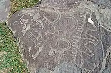 • Ughtasar Petroglyphs - The spectacular site is a valley with a lake, surrounded by mountain peaks on most sides. The valley is littered with massive boulders, some of which have one, two or even dozens of petroglyphs on them, totaling in the thousands, aged from the 5th to 2nd century BC. Patches of snow are found year round, and nights are very cold even in August. The site is only accessible in July-September, as it is above 4,000 meters in elevation. A visit to the remote, mountaintop site of the Ughtasar petroglyphs is a full day proposition. It is better to start the day in the area, rather than from Yerevan, since starting in Yerevan adds 5 hours (roundtrip) to an already very long trip (4-5 hours roundtrip not counting the time you spend at the site).