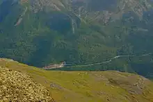 New tunnel through the great Junkerdalen valley and gorge; the old road is left as an alternative for pedestrians and bicycles.