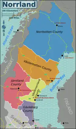 As the rest of Sweden, Norrland is divided into traditional provinces (landskap), as well as counties (län); the current political entities. As some provinces have very small population, counties are used as the basic regions of Norrland.