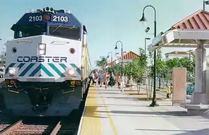 Amtrak's frequent Pacific Surfliner San Luis Obispo-Los Angeles-San Diego route runs along the coast of North County, stopping in Oceanside and Solana Beach. Additionally, a commuter rail line called the COASTER overlaps with the Pacific Surfliner between Oceanside and San Diego, linking together most of the coastal cities and towns of North County with San Diego to the south.