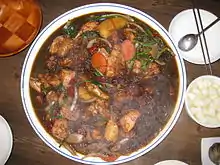 Not normally distinguished for its food, the region's best known regional speciality is the Andong jjimdak — chunks of chicken with potatoes and transparent noodles in a sweet and spicy dark sauce. Andong, the city rich in Confucian traditions, is where you will find restaurants that serve the dish.
