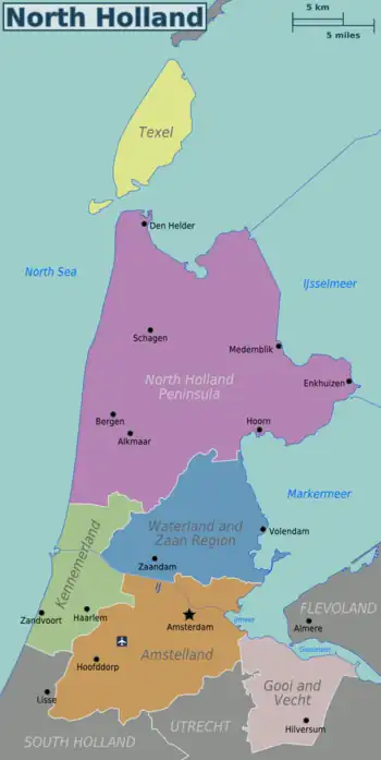 North Holland encompasses the northern half of the former county of Holland. It can be divided into six regions: