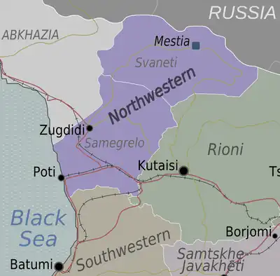 Northwestern Georgia coincides with the administrative regions Samegrelo. and Svaneti. of Georgia. Svaneti is divided into two parts, Upper Svaneti and Lower Svaneti, separated by the tall Svaneti Mountain Range.