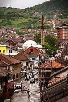 Novi Pazar is a city of 100,000 people (2011) in Podrinje. The city is the cultural centre of the Bosniaks in Serbia and the region of Sandžak. A multicultural area of Muslims and Orthodox Christians, many monuments of both religions, like the Altun-Alem Mosque and the Church of the Holy Apostles Peter and Paul, are found in the region which has a total of 30 protected monuments of culture.