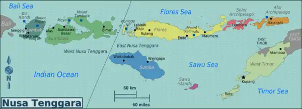 Nusa Tenggara ("Southeast Islands"), also known as the Lesser Sunda Islands, is a region in southeastern Indonesia.
