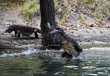 The dragon usually bites a larger animal and then waits for the infection to kill it. So, despite the fact that being actually eaten is unlikely, the bite itself can be deadly. Keep at a considerable distance and never enter dragon territory alone. If you use basic common sense you should have a wonderful time viewing these magnificent animals. The absence of crocodiles on Komodo Island (due in part to a lack of suitable habitat) leave the Komodo Dragons with no natural predators.