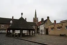 An open-air market held in the town's market square every Wednesday and Saturday, near the ancient octagonal Buttercross with its pyramidal roof and wooden stocks, a Grade I listed building.