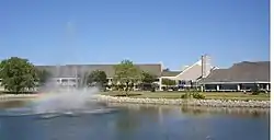- π Deer Creek State Park and Resort Lodge (southwest Pickaway County, west of Circleville, northwest of Route 22 on Route 207.). 3,100 acre retreat. Lodge: 110 guest rooms, indoor, outdoor pools, sauna, whirlpool, exercise room, restaurant, lounge, and meeting rooms. Cottages: 25 cottages, two bedrooms, bath, shower, living room, sofa bed, complete kitchen, dining area and screened porch. Camping: 227 electric campsites, showers, flush toilets, pet camping, Five Rent-A-Camp units, horsemen's camp with primitive overnight facilities, area for youth groups. Unlimited horsepower boating, 1,277-acre Deer Creek reservoir, two launch ramps, marina, fuel, boat rental and seasonal dock rentals. 1,700-foot swimming beach, concession area, changing booths, boat-swim area, picnicking, nine miles of hiking trails, fourteen miles of bridle trails, fitness trail, 350-acre, 18-hole public golf course, fitness center, volleyball, basketball courts, horseshoe pits, playground, miniature golf, bicycles may be rented, volleyball, basketball courts, playgrounds, baseball field, and tennis courts for lodge guests.