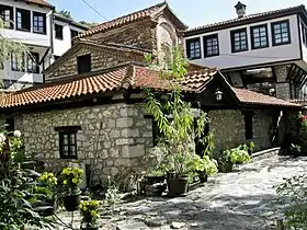 When the Turks came they settled on the flat land along the lake and that became the Muslim part of town and the part on the hills inside the walls was always the Christian part, with the bazaar as a meeting place. As the city grew and the Christians were not allowed to build outside the walls, Ohrid developed very specific architecture with tight narrow streets and tunnels (houses built over the streets). The houses had tiny yards usually enclosed in the ground floor, and the houses grew over the streets on the upper floors since the locations were small. The steep terrain enabled everybody to have a good view of the lake and because of the strong sun the houses were painted white, so they would reflect the sun. Because of the winds from the lake, the houses in Ohrid don't have the open spaces that traditional houses in other towns in North Macedonia have.