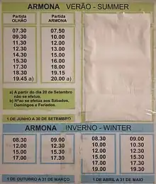 There are ferries to all nearby islands; Armona, Culatra, and Farol. See the time tables to the right. Armona is more than enough for a trip.