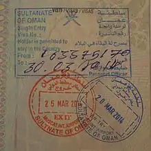 Oman has a common visa facility with the Emirate of Dubai. If you pass through Dubai immigration and are granted a visa to Dubai for at least 3 weeks, you will then be entitled to a free-of-charge visa for 3 weeks to Oman. You will need to show your passport stamp from Dubai to the Omani immigration officers. Visas are sold by private businesses at some ports of entry and these people may not be familiar with this and will try to convince you that you need to buy a visa from them. If it is your first visit to that particular port of entry, it may be difficult to know how to navigate past these people. If you make it to an immigration officer they will be familiar with the visa fee waiver and allow you to enter without paying. The countries benefiting from this type of visa are: Portugal, Spain, France, Switzerland, Italy, Britain, Sweden, Greece, Austria, Ireland, Finland, Germany, Iceland, Belgium, Norway, The Netherlands, Denmark, South Korea, Japan, Brunei Darussalam, Malaysia, New Zealand, USA, Canada, Australia, Singapore, Hong Kong, Luxembourg, Vatican City, Monaco, Andorra, and San Marino.