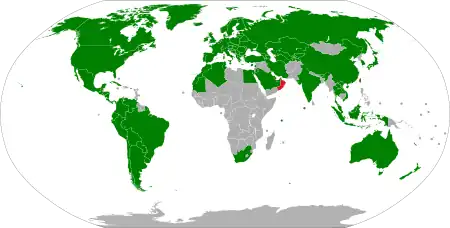 - Albania, Andorra, Argentina, Australia, Bolivia, Bosnia and Herzegovina, Brazil, Brunei, Canada, China, Chile, Colombia, Croatia, Ecuador, French Guyana, Hong Kong, India, Indonesia, Japan, Macau, Malaysia, Moldova, New Zealand, North Macedonia, Paraguay, Peru, Russia, Seychelles, Singapore, South Africa, South Korea, Suriname, Taiwan, Thailand, Turkey, Ukraine, USA, Uruguay and Venezuela.