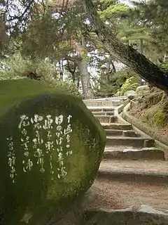 Onomichi is best known for two walks. The Path of Literature (文学のこみち Bungaku no komichi) is the shorter of the two, winding its way downhill from Senkōji Park back to the city. It features 24 stones, carved with memorable quotes from Japanese authors linked to Onomichi; alas, they're all in Japanese, but it's a pleasant stroll through woods, temples, and shrines just the same.