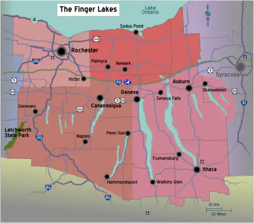 As noted above, four major highways skirt around the Finger Lakes and allow for quick travel from one side of the region to the other.