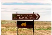 85 km. from Marree you can take a short side trip (3km return) to have a look at Lake Eyre South, 12 m. below sea level. This is not the main body of the lake, but a natural extension connected to Lake Eyre proper by the Goyder Channel. Chances are that you won't see much else than a large expanse of salt, as the lake rarely contains water. Do not attempt to drive on the lake -- you won't be the first one to have your vehicle immobilised when the salt crust breaks and you're stuck in the slimy goo underneath. Getting you out might prove very difficult, as other vehicles won't risk driving to where you got stuck.