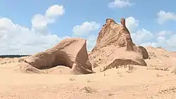 Sculptures on top of sand dune, forming the northern part of the Hokianga Heads