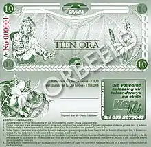 The town uses (alongside the rand) its own currency, the ora, which is pegged to the rand. If you are a tourist, you will get all change in rand as the ora has no value outside of Orania. But it makes a good souvenir!