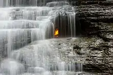 - π Eternal Flame, Chestnut Ridge Park (enter at Corral Parking Lot on Rt 277). Located on a shale creek bed in the southeast corner of Chestnut Ridge Park is a naturally occurring flame coming out of the rock. Underground pressure forces gas to leak from the shale.