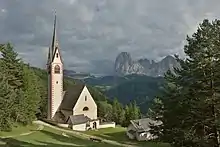 - St. Jacob's Church (St. Jakob Kirche, Chiesa S. Giacomo, Dlieja da Sacun). The oldest church in Val Gardena (first mentioned in a document in 1325, but the date 1181 is carved into the bell tower), reachable only by a steep trail through the woods.