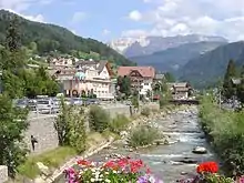 The Val Gardena valley, within which Sankt Ulrich is, is one of the few areas within Italy where Ladin is one of the official languages. The center of town is at the valley floor and extends north to the foothills of Mount Raschötz (Italian: Rasciesa). The Gardena river (German: Grödner Bach, Italian: Rio Gardena), which is a tributary of the Eisack river, runs east-west towards the southern side of the town. To the south, lies the largest Alpine pasture - the Seiser Alm, and this is a big source of the tourism business for the town.