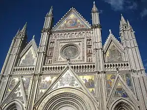 - π Orvieto Cathedral (Duomo di Orvieto). The wonderful Duomo of Orvieto is the main 'must-see' sight in this town. Constructed in the 13th and 14th centuries, the black and white striped building is in mixed Romanesque and Gothic styles. The setting, on the Orvieto hill and visible from miles away in the Umbrian countryside, doesn't hurt either. But, impressive as the cathedral is, the piece de resistance is inside, the frescoes of Luca Signorelli on the theme of the Last Judgment inside the Capella di San Brizio.