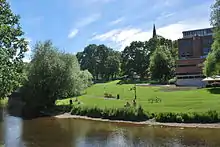 - 🌍 Stensparken (Close to Bislett Stadium (trams 17 and 18)). 24 hours. This charming park begins at Fagerborg church (neogothic, granite) and stretches for some 500 meters to a fine panoramapoint in the northern end. There is a café on the top. Stensparken is a good choice if nearby St. Hanshaugen park is too crowdy. Just west of the park there is a line of stately town houses. free.