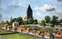 Old Aker Church from the 12th century, the oldest building in Oslo, painted by Edvard Munch in 1880. Small wooden houses in Telthusbakken are still standing.