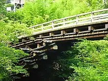 - 🌍 Saruhashi Bridge (猿橋). Saruhashi literally means 'monkey bridge'. Saru means monkey and hashi means bridge. It is known for its unique architecture which, as the story goes, is said to have been built by monkeys. It is a beautiful bridge that runs over a stream with a nearby playground and two small shrines, making the site very pleasant. The bridge is built across a canyon, next to three other bridges, one of which is dedicated to carrying the large waterpipes for the nearby hydroelectric plant. The succession of bridges across the river is a sight to behold.