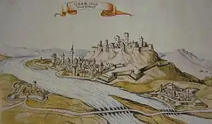 - 🌍 Esztergom. The Ottomans controlled the famed Esztergom Castle between 1543 and 1683, except for a decade-long interim from 1595 onward. The castle, along with the stockade fort of 🌍 Ciğerdelen just across the river in what is now Štúrovo, Slovakia, served as the Ottomans' furthest base along their much beloved Danube. The still-popular military march Estergon Kalesi tells the tale of the last, desperate Ottoman defence of the castle. The Viziváros ("Watertown") district, just below the castle and right on the bank of the river, was the main Turkish settlement in the town, with scant ruins of the Ottoman buildings scattered about and a reconstructed mosque (except for the top of its minaret) that is a museum and cafe.