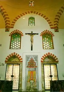 - 🌍 The Mosque of Pasha Qasim (Gázi Kászim pasa dzsámija - Belvárosi Plébániatemplom), Széchenyi István square, 2 (Near to Hotel Főnix), ☏ +36 30 474 0175. Built on site and from the stones of Saint Berthold’s gothic church by Pasha Qasim the Victorious, the Turkish character of the church was restored during the most recent, early 1940s renovations. Inside the building, which functions as a Catholic church, frescoes depicting quotes from the Qur’an from the 16th century are visible. The other mosque in the city, built by Yakovali Hassan, is in Kórház Square at the western terminus of the main pedestrian street, and is also open for visit when not in religious use by the city’s Muslim community.