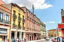 The city occupies a small valley and is almost completely surrounded by large hills, which are also covered in colorful houses. The city centre has maintained most of its colonial-era structures, with narrow winding streets. Away from the centre is the modern part of Pachuca, with warehouses, factories, supermarkets and a large football stadium called El Huracán (The Hurricane).