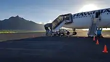 A Hawaiian Airlines aircraft at Pago Pago Airport, June 2018