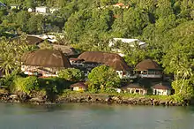 - 🌍 Sadie's by the Sea, Utulei Beach, ☏ +1 684-633-5900, info@sadieshotels.com. Formerly known as the Rainmaker Hotel (aka the Ratmaker) it has been much improved.