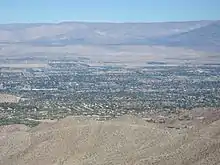 Palm Desert is a city of 53,000 people (2018) in the desert of California between Palm Springs and Indio. It lies in the Coachella Valley at the base of the San Jacinto Mountains. The city is home to many golf courses, attractions, luxury hotels and shops, and spas that make the region a famous getaway for much of Southern California.