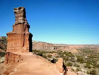 Palo Duro Canyon cuts through the High Plains of the Texas Panhandle, in the southern United States. It is a protected area, part of the Palo Duro Canyon State Park.