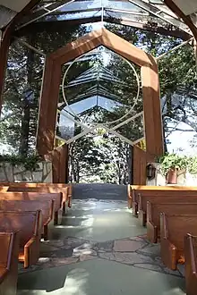 - Wayfarer's Chapel. Is the jewel of Palos Verdes-- a stunningly beautiful little chapel - unique in all of the world. The chapel is virtually all glass, surrounded by beautiful trees, overlooking the Pacific Ocean. The gardens are also impeccable. A lot of people are married here. Located on a knoll overlooking Portuguese Bend, the "glass church" was designed by Lloyd Wright, architect and son of Frank Lloyd Wright. Built as a memorial to philosopher and religious reformer Emanuel Swedenborg, it was designed to serve as a chapel for meditation and prayer for wayfarers. Like his father, Lloyd Wright practiced an organic architecture and he said the inspiration for the church came from his spiritual feelings visiting a Redwood Forest, surrounded by the majesty of the giant trees. The chapel is constructed of redwood, glass and local stone. Note the use of the triangle throughout the chapel. Words or photos can not do the chapel justice.