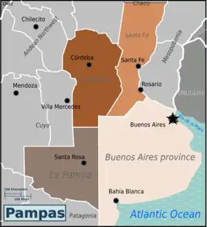 Location of Pampas region in Argentina